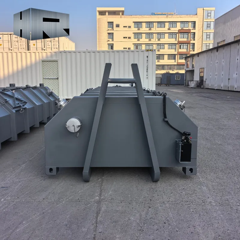 The container adopts a universal hooklift frame structure that complies with international hooklift truck standards.
